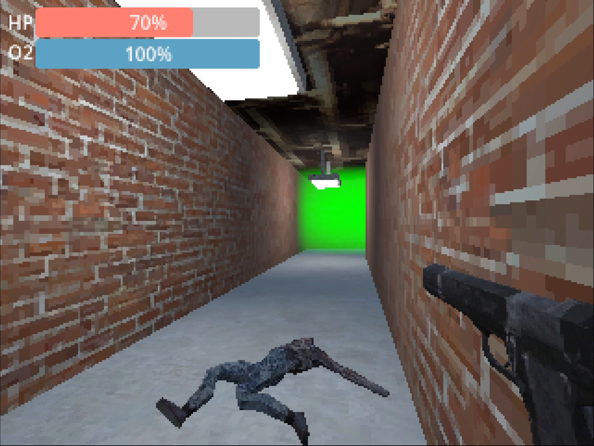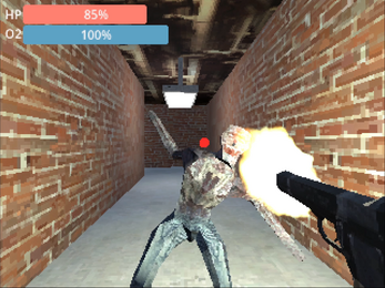 A virus has broken out in the factory via the means of a deadly green gas! You will need to fight zombies and protect yourself using a gas mask with a limited oxygen supply. This game uses tank controls, using the keyboard for input.